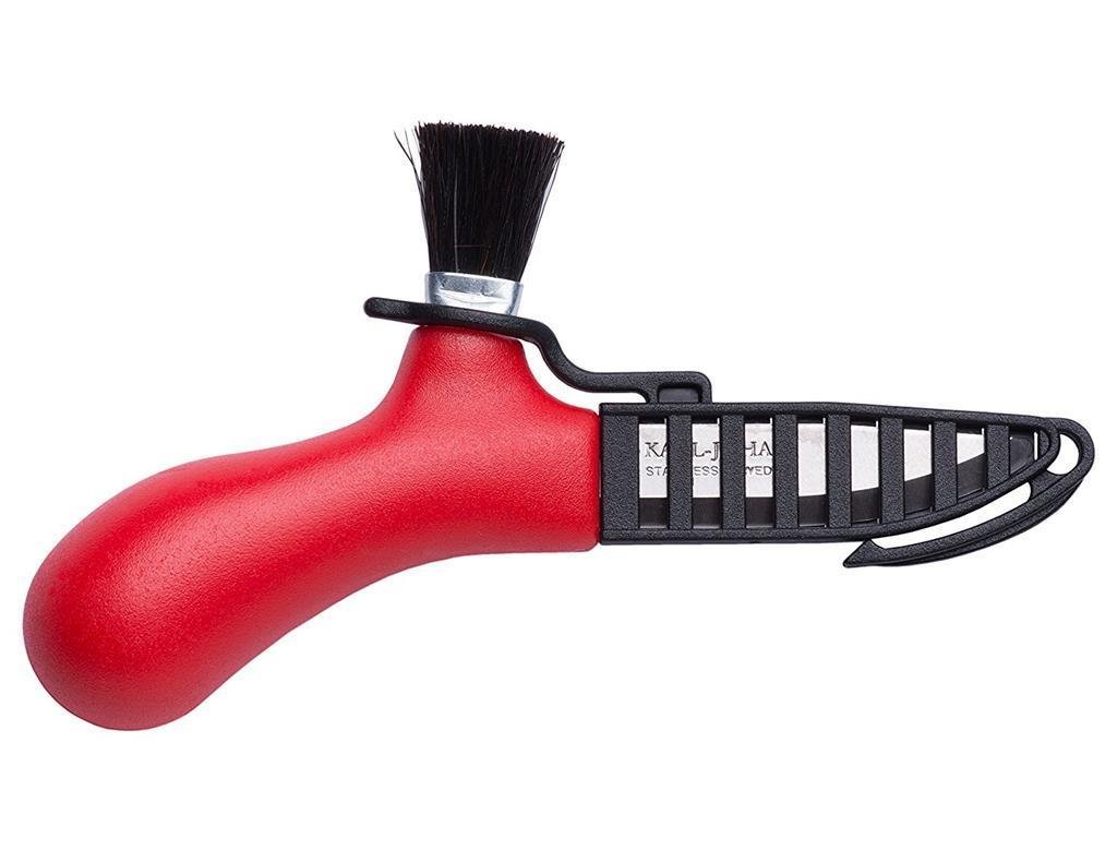 Couteau suédois MORA pour cueillette de champignons en acier inoxydable avec brosse en crin de cheval véritable rouge
