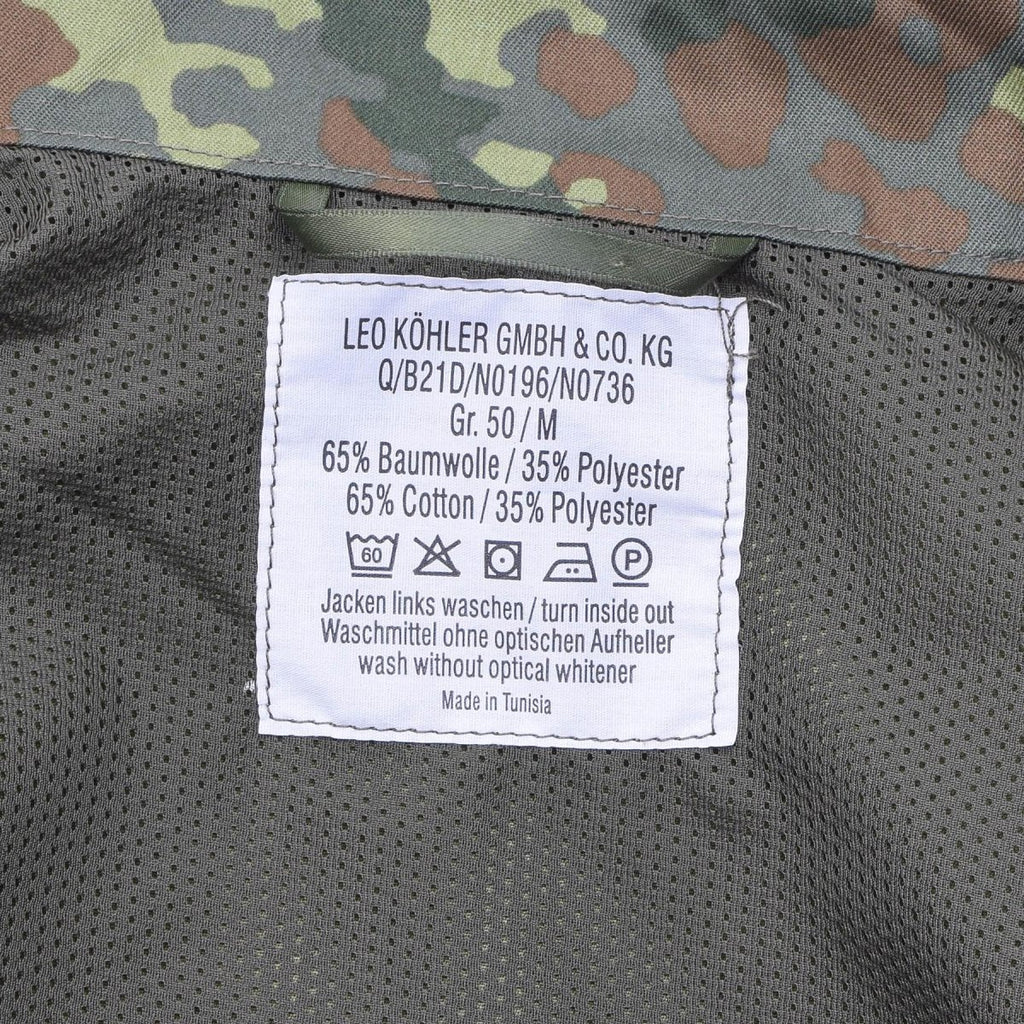 Présentation de la veste tactique de combat militaire Leo Kohler en camouflage flecktarn, un vêtement haut de gamme alliant style et fonctionnalité. Confectionnée à partir d'un mélange de coton durable, cette veste de l'armée allemande garantit confort et longévité.