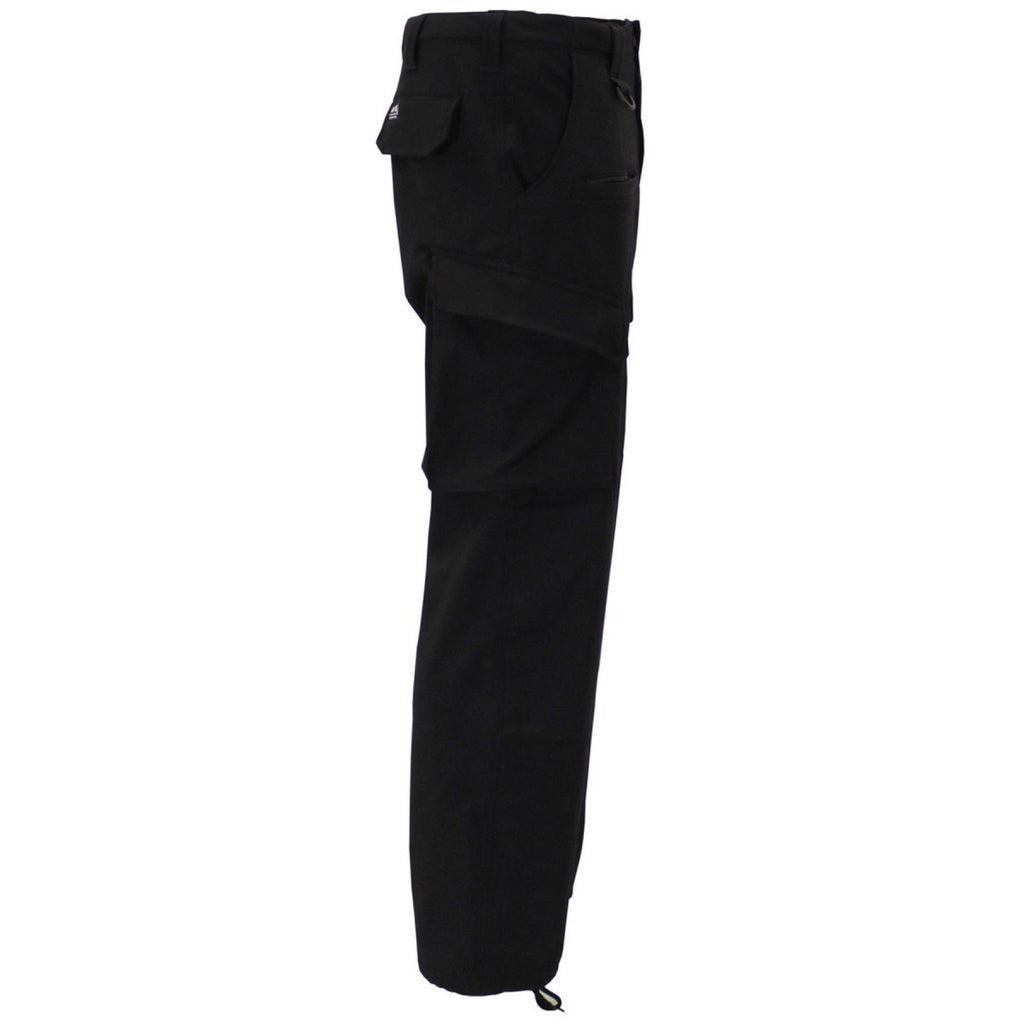 Pour plus de fonctionnalité, le pantalon comporte une fermeture zippée sur le devant, deux poches latérales, deux poches hanches avec rabat et boutons, deux poches cargo sur les jambes et une poche zippée supplémentaire sur la cuisse droite. Les passants de ceinture extra longs de 5,5 cm avec anneaux en D offrent une compatibilité avec les ceintures tactiques et la fixation du matériel. Les genoux renforcés augmentent la durabilité lors d'activités intensives.