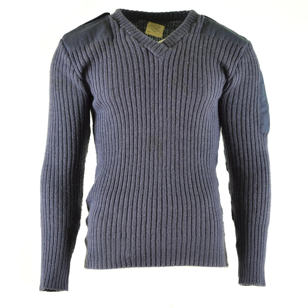 Pull original de l'armée britannique Commando Jumper Pull bleu gris en laine à col en V