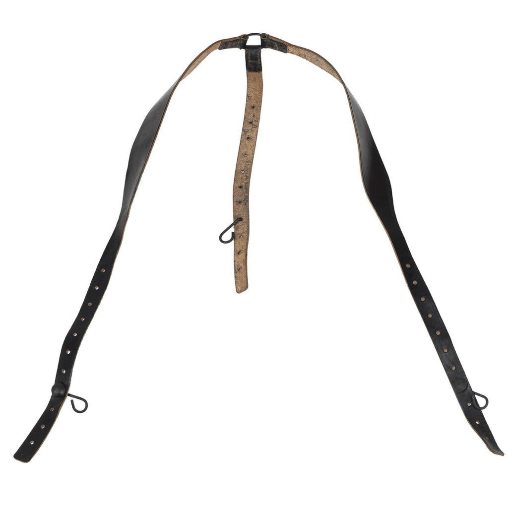 Bretelles en cuir militaire autrichiennes originales, sangle en Y réglable, noir vintage