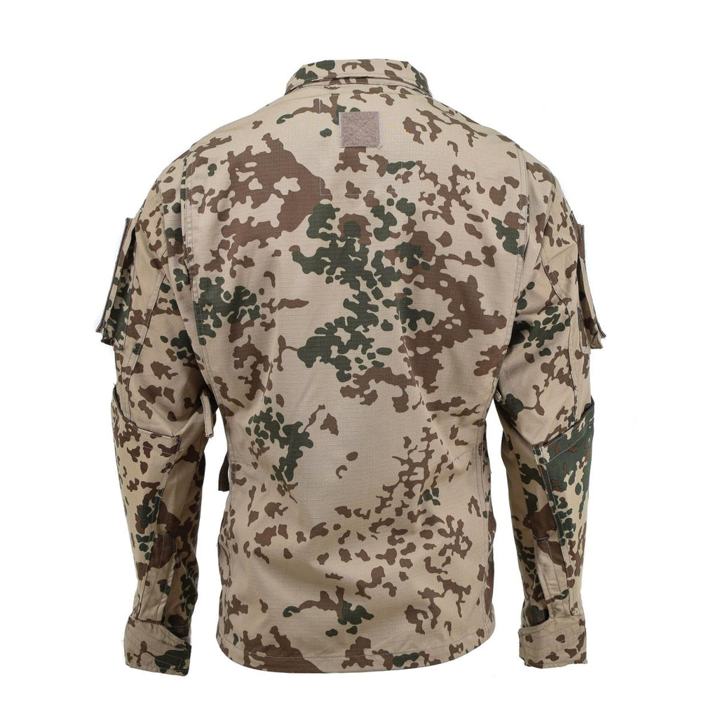 • Fabriquée à partir de tissu ripstop durable, la chemise de combat Desert Flecktarn résiste aux déchirures et à l'abrasion. Cela en fait un choix fiable pour les environnements difficiles où d'autres matériaux peuvent échouer. La conception de la chemise comprend des coudes renforcés, offrant une durabilité accrue dans les zones très sollicitées. Il comporte également un devant boutonné et de multiples poches, vous offrant suffisamment d'espace pour ranger vos essentiels comme des cartes, des outils ou des appareils de communication.