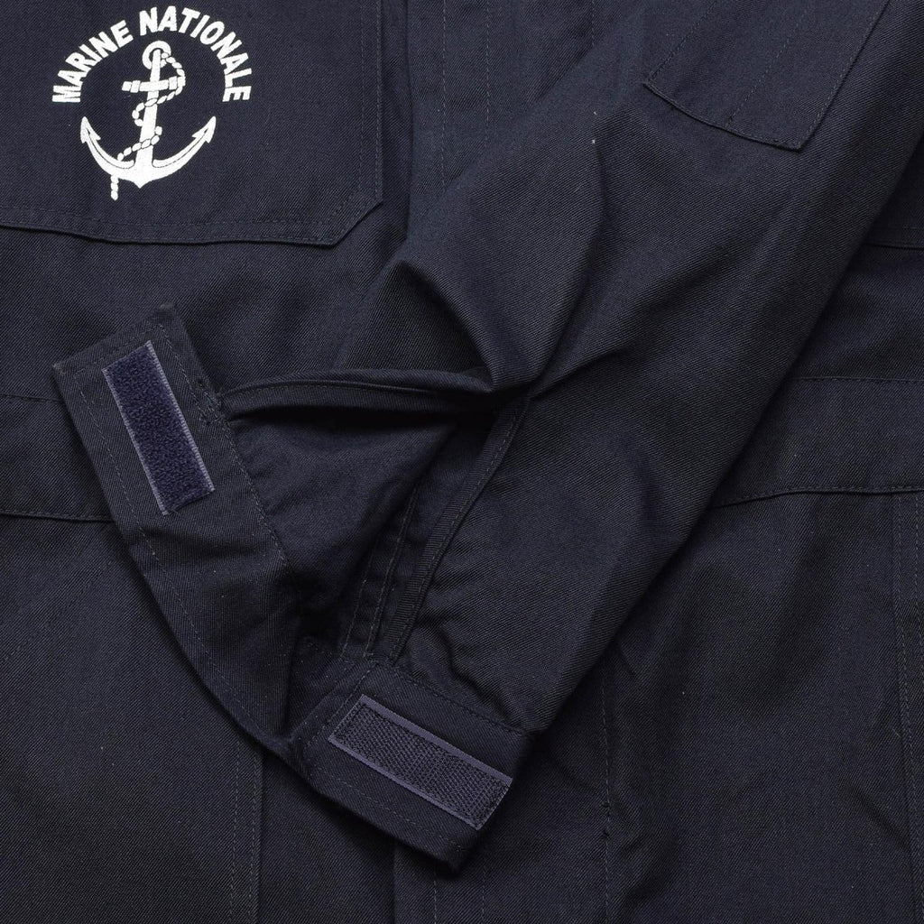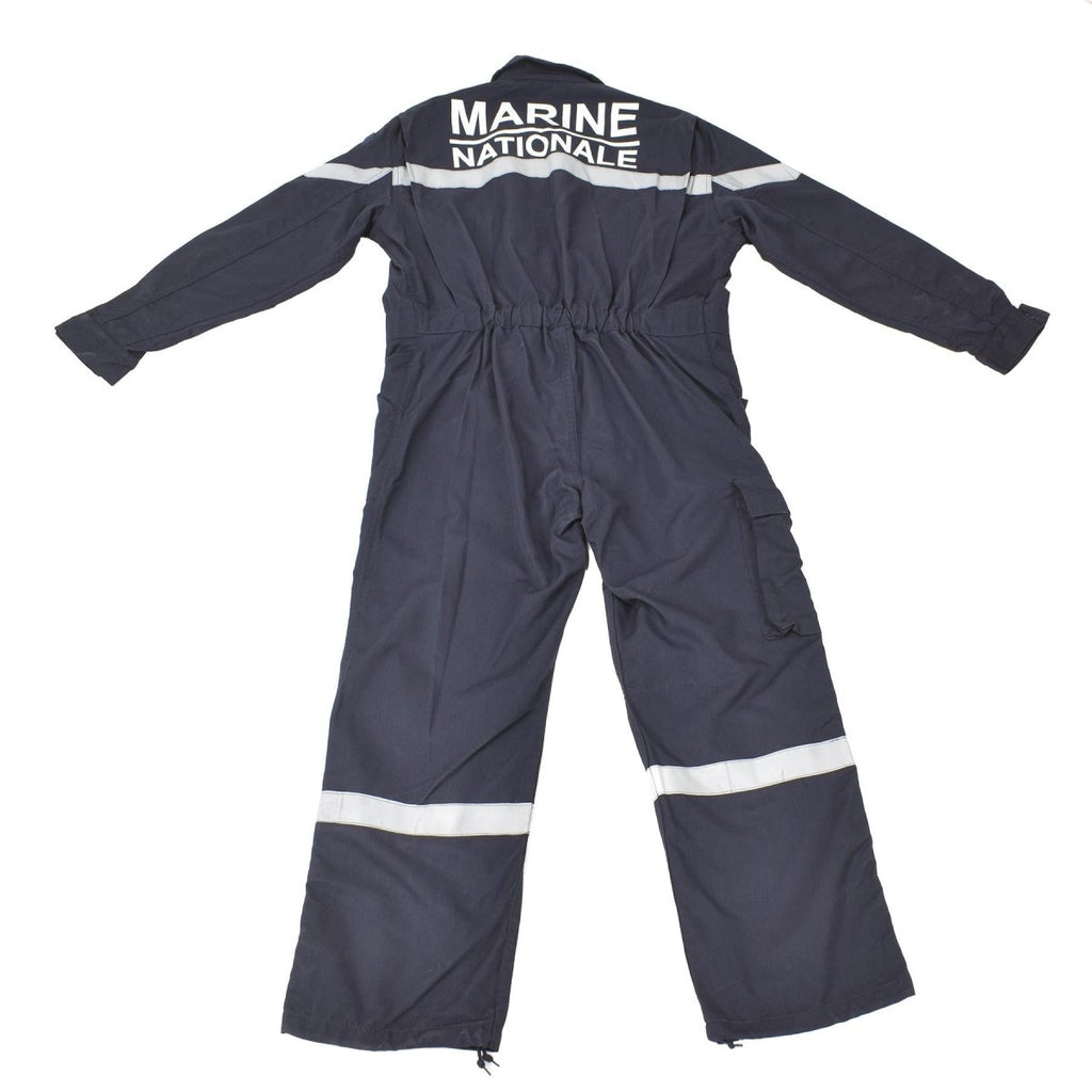 Combinaison marine thermostable La véritable combinaison marine française est un vêtement très durable et fonctionnel conçu pour résister aux conditions maritimes exigeantes. Sa couleur bleu foncé élégante est une représentation classique de la tenue navale, tandis que l'inclusion de bandes réfléchissantes améliore la visibilité pour plus de sécurité dans des situations de faible luminosité. La fermeture éclair bidirectionnelle sur le devant permet un port facile et des réglages rapides de la ventilation, ce qui en fait un choix idéal pour les rigueurs de la vie en mer. Cette combinaison est un symbole de l'excellence navale française, alliant style, durabilité et praticité pour ceux qui servent à bord des navires et des navires.