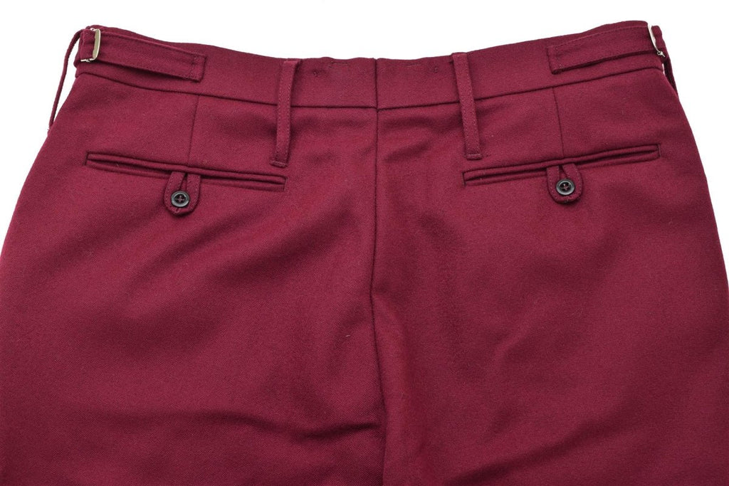 Améliorez votre tenue avec cet authentique pantalon bordeaux militaire britannique, idéal pour une touche sophistiquée. Conçu pour les hussards royaux, ce pantalon militaire bordeaux présente des caractéristiques intemporelles telles que des passants de ceinture, des chevilles unies, une braguette zippée et des poches coupées, dégageant un charme et un raffinement classiques.
