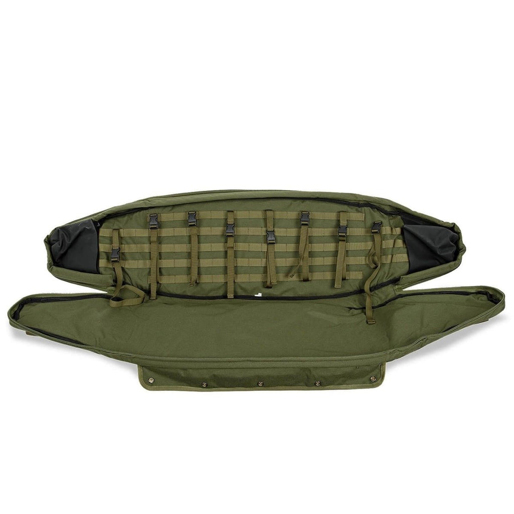 De tas is gemaakt van stevige, slijtvaste materialen en is ontworpen om zware outdoor- en tactische omstandigheden te weerstaan. De gewatteerde binnenkant helpt gevoelige apparatuur te beschermen tijdens transport, terwijl het ontwerp over de volledige lengte gemakkelijk plaats biedt aan langere items. Meerdere externe vakken bieden handige opbergruimte voor accessoires en essentiële spullen.