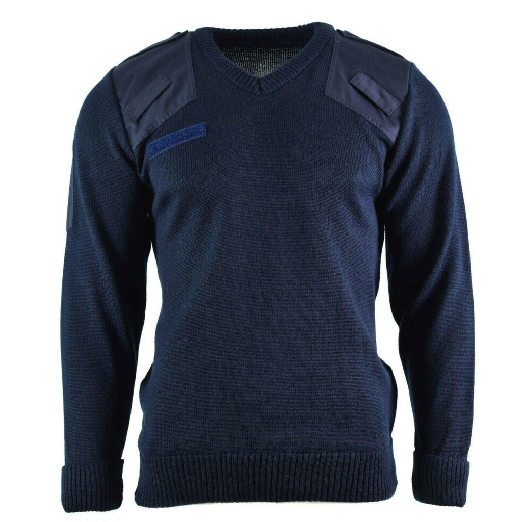 Echte British Sweater Army Police Pullover Commando Jumper Blue V-Neck Men Nieuw