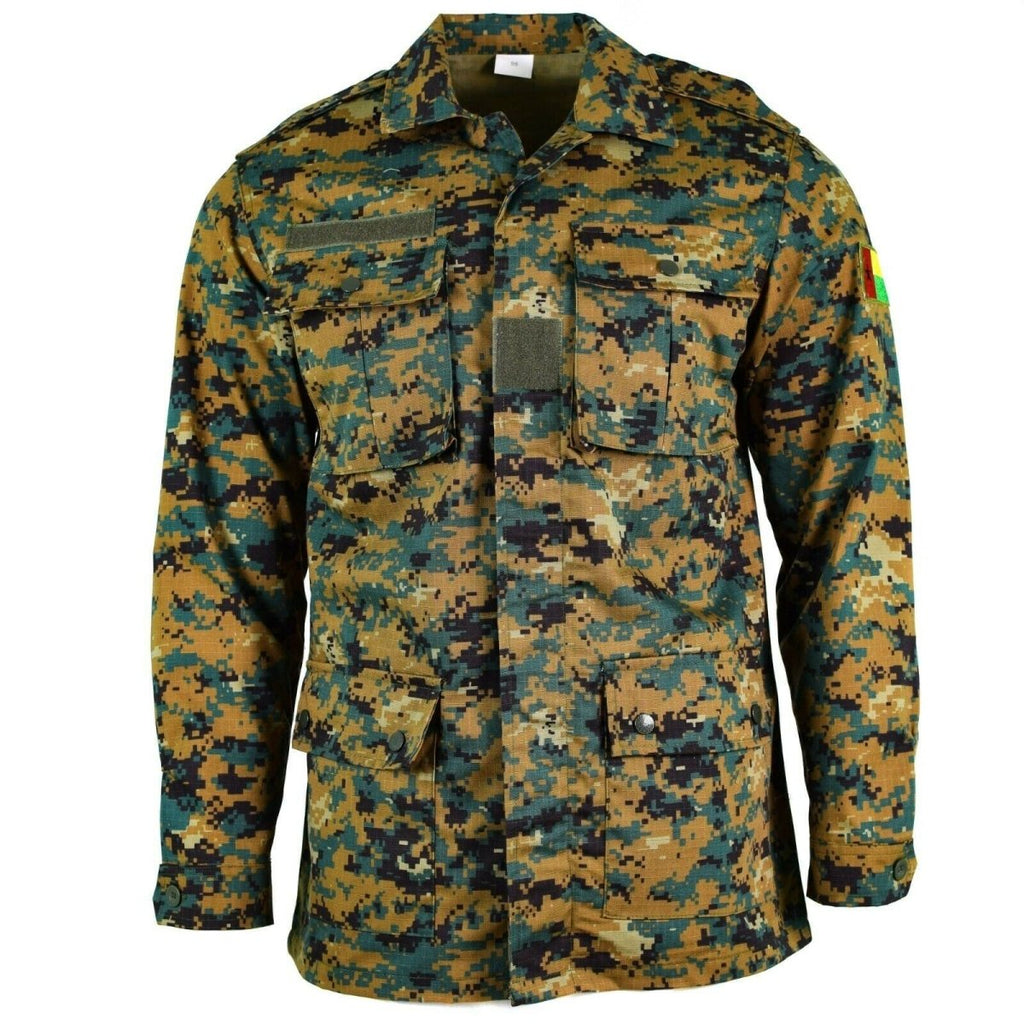 Ervaar de robuuste duurzaamheid van het originele Guinee Bissau digitale camouflagejack. Dit militaire overtollige juweel is ontworpen voor outdoorliefhebbers en tactische avonturiers en voldoet aan alle eisen voor authenticiteit en kracht.