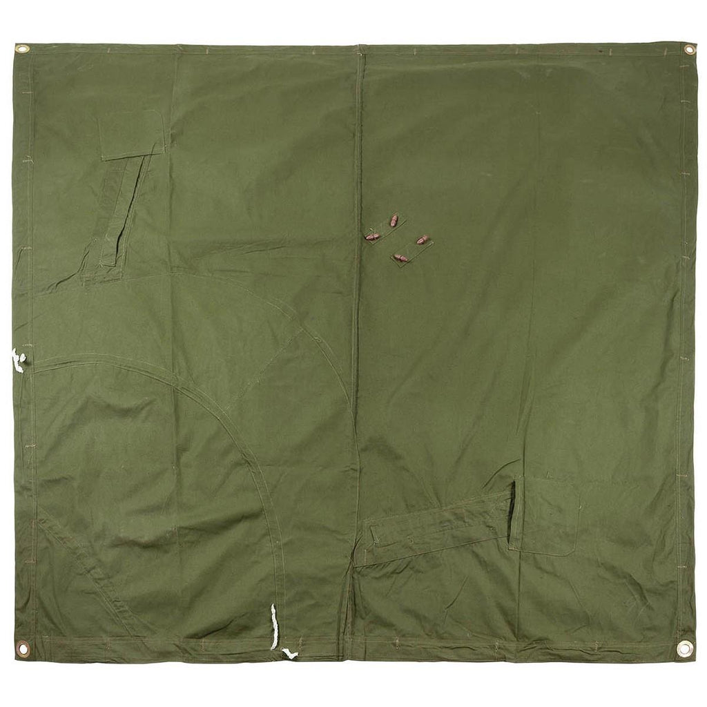 Dit stuk waterdichte zeildoektent is gemaakt van canvaskatoen en heeft gepaarde knopen en sleutelgaten. Het kan aan andere Shelter-helften worden vastgeknoopt om zowel kleine als grote tenten te vormen. Hij kan ook gedragen worden als een waterdichte regencape/poncho, deze vormt de basis van de capuchon, terwijl je gewoon de voorkant dichtknoopt en je armen door de openingen steekt.