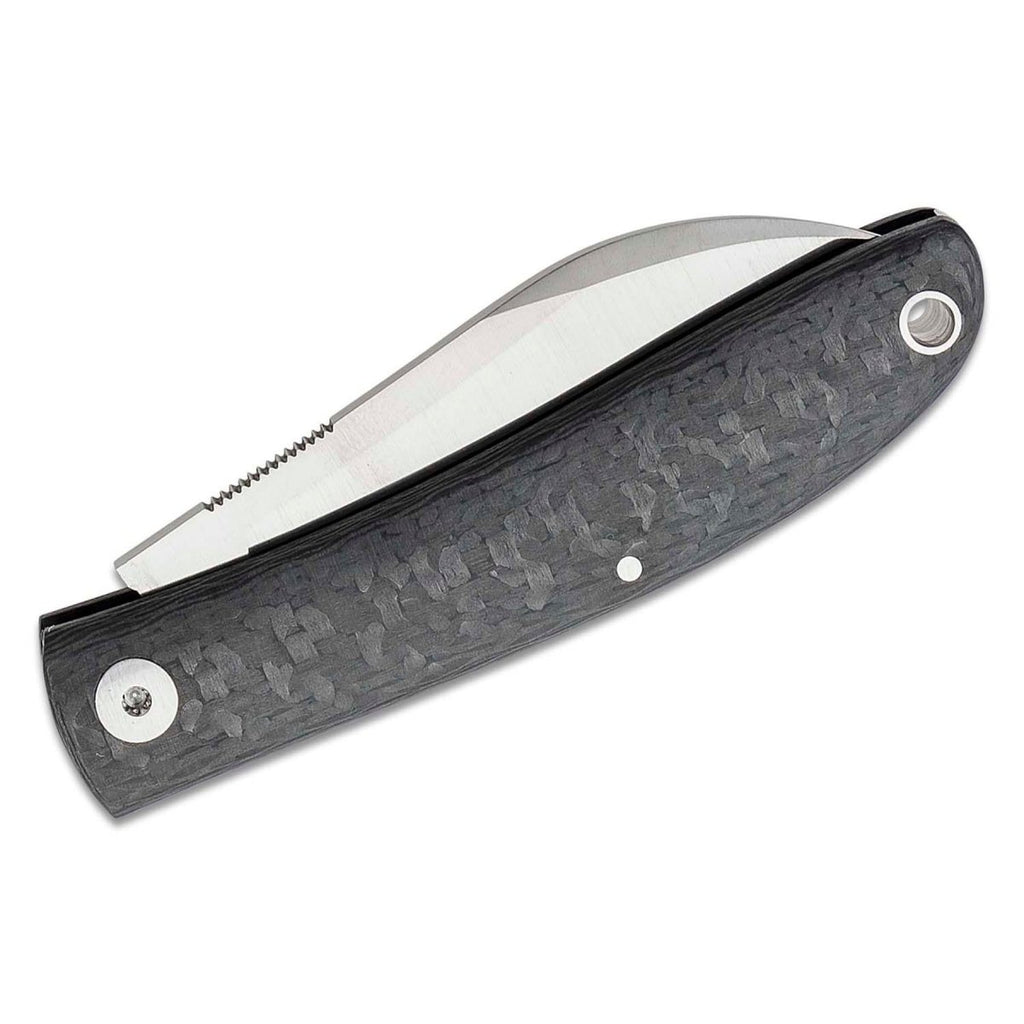 - De handvat van koolstofvezel biedt een lichtgewicht, ergonomische en veilige grip. Het zorgt ervoor comfort en controle of je het mes nu gebruikt voor kleine klusjes of veeleisende projecten. Het strakke, moderne ontwerp voegt daaraan toe stijl zonder dat dit ten koste gaat van de prestaties.