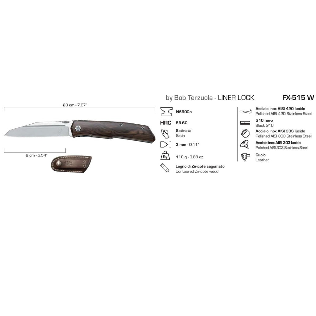 De FoxKnives Terzuola Design FX-515W zakmes valt op als een stijlvol zakmes gemaakt door de legendarische ontwerper Bob Terzuola.
