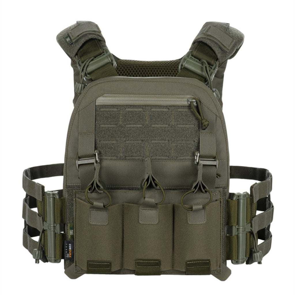 Het MOLLE-compatibele webbingsysteem op de voor- en achterpanelen maakt de bevestiging van extra tactische uitrusting mogelijk, zoals magazijntassen, gereedschapstassen, medische kits of drinksystemen. Het snelverstelsysteem zorgt voor een snelle montage en eenvoudige configuratie, afhankelijk van de missievereisten.