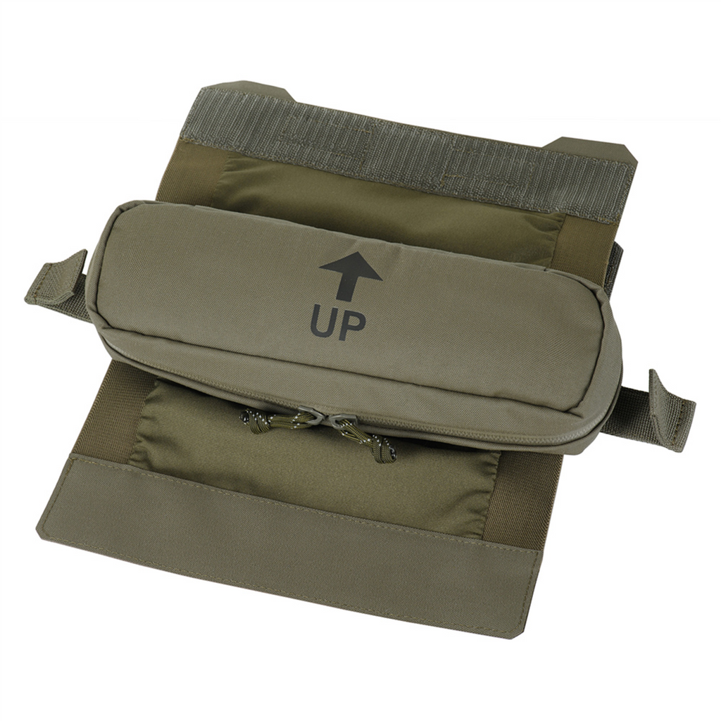 De tas is gemaakt van Cordura 500D en Cordura Squadron, duurzame materialen die bestand zijn tegen slijtage en zwaar gebruik. Het is ontworpen om te worden geïnstalleerd in de achterzak van een platendrager en kan ook worden geïntegreerd met andere uitrusting met behulp van het MOLLE-montagesysteem en het verwijderbare klittenbandpaneel.