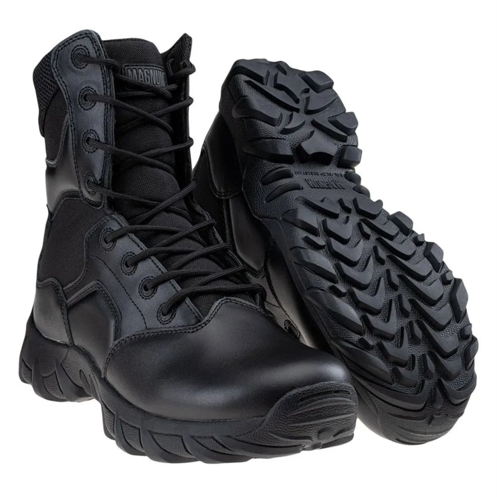 De Magnum Cobra 8.0 V1-wandelschoenen zijn lichtgewicht en duurzame tactische laarzen, ontworpen voor veeleisende buitenactiviteiten, wandelen en dagelijks professioneel gebruik. Deze laarzen zijn gemaakt van een combinatie van leer en ademende textielmaterialen en bieden uitstekende ventilatie, terwijl ze duurzaamheid en ondersteuning behouden tijdens lange gebruiksuren.