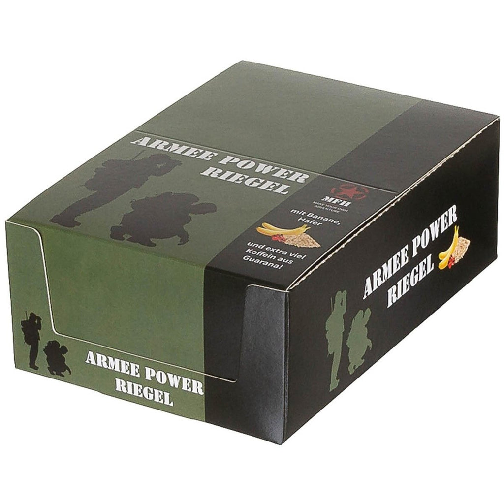 De MFH Army Energy Bar is een energiereep op basis van haver met banaan- en guaranasmaak, ontworpen voor buitenactiviteiten en fysiek veeleisende situaties. Het bevat toegevoegde cafeïne uit guarana-extract en zorgt voor een snelle energieboost wanneer dat nodig is.