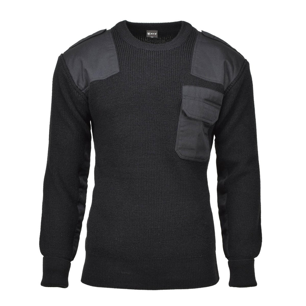 MFH Brand Sweater Commando Jumper Rib Gebreide wolversterkte pullover zwart nieuw