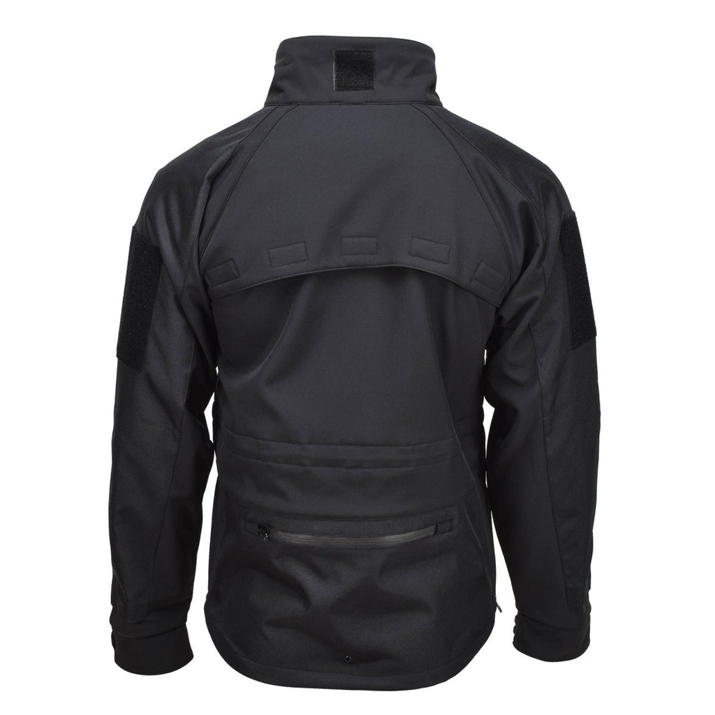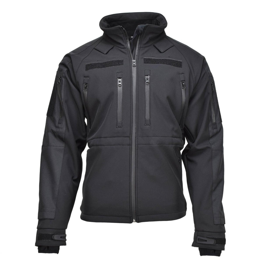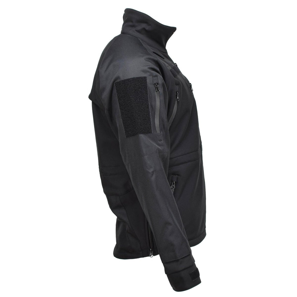 - Deze jas is gemaakt van softshell-materiaal, wat zorgt voor flexibiliteit en comfort. Ontworpen met militaire specificaties, biedt het bescherming tegen de elementen en zorgt het voor bewegingsvrijheid. De strakke zwarte kleur biedt veelzijdigheid, waardoor hij geschikt is voor uiteenlopende gelegenheden.