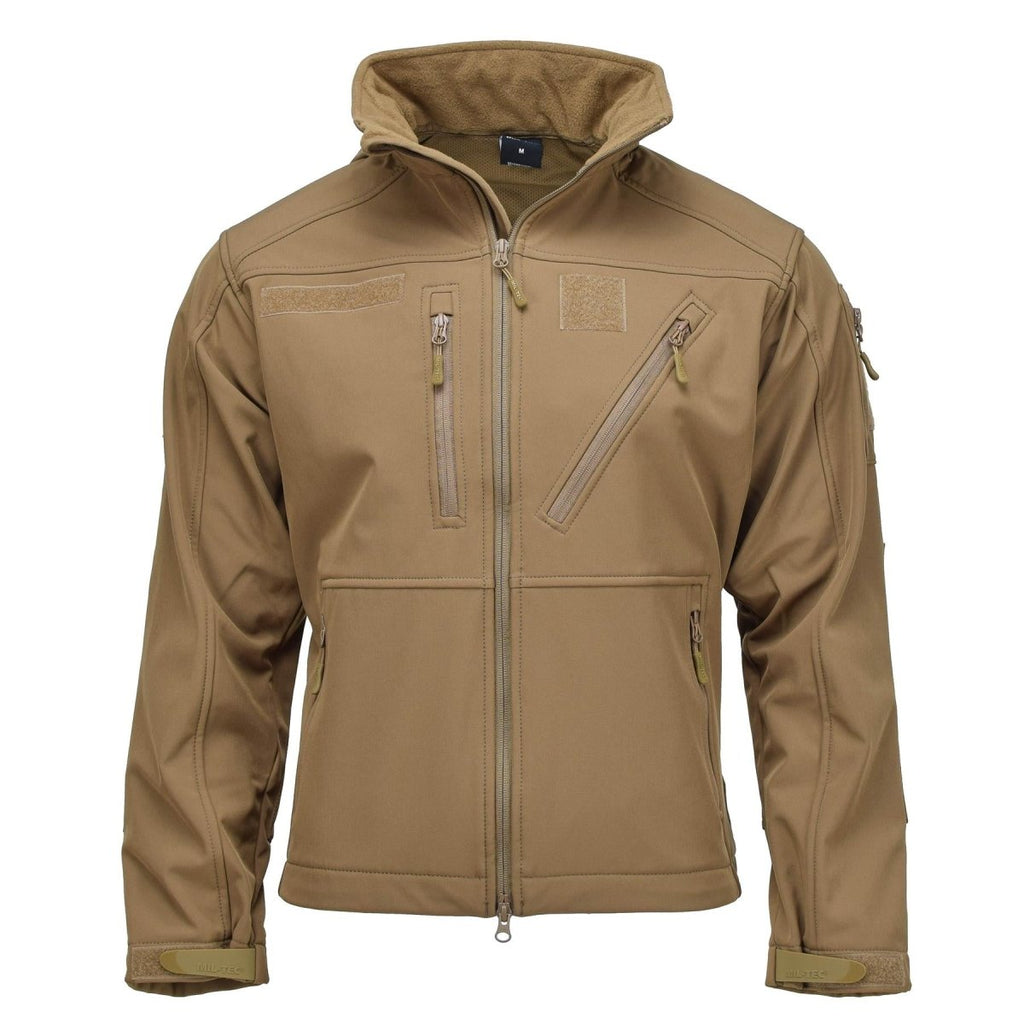 Maak kennis met het MIL-TEC jack in militaire stijl, een slank tactisch softshelljack in donkere coyotekleur. Dit veelzijdige kledingstuk heeft een capuchon voor extra bescherming en geventileerde oksels voor beter ademend vermogen.