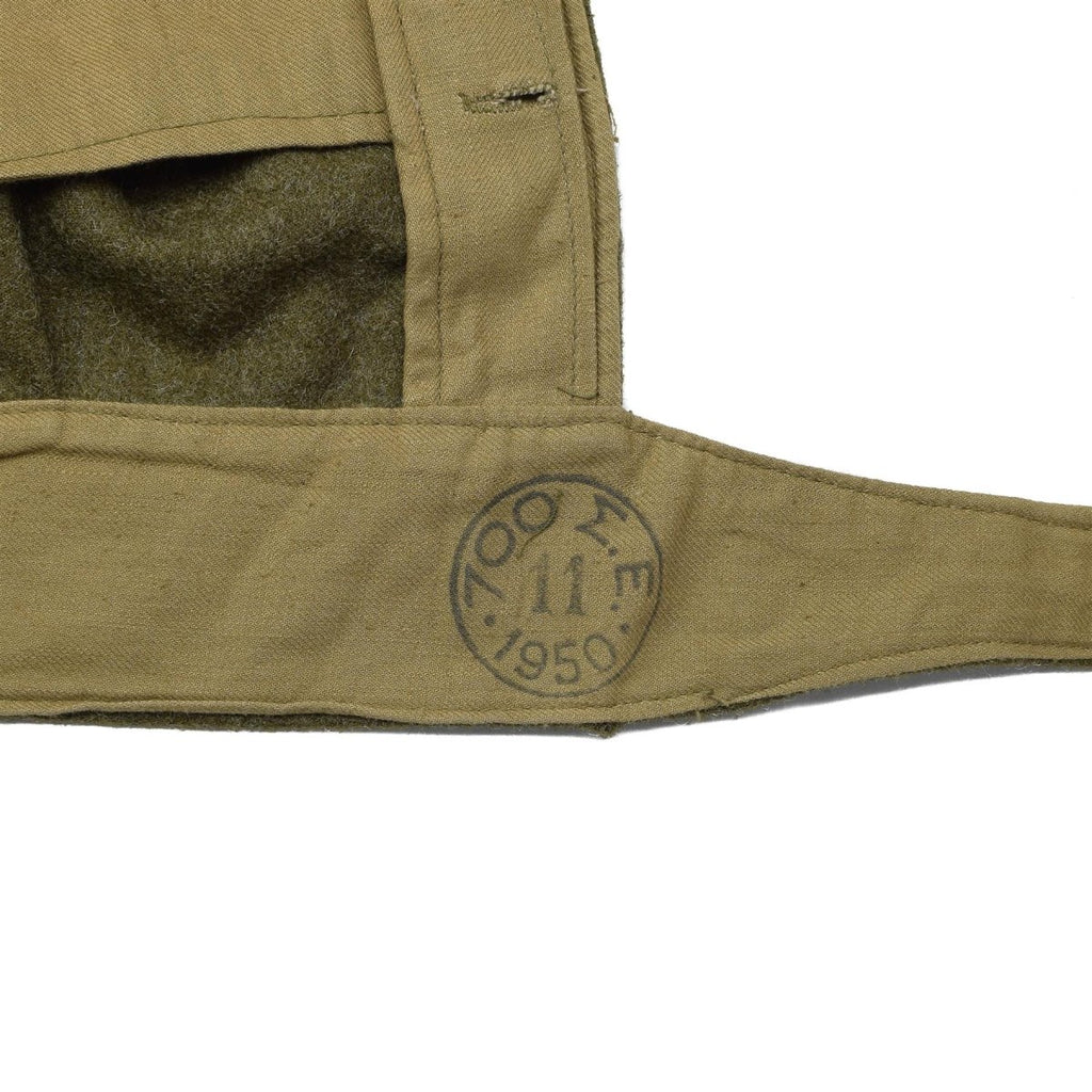 - De jas heeft een klassieke kraag en manchetten, wat verfijning toevoegt aan het militair geïnspireerde ontwerp. De voorkant met knopen zorgt voor een gemakkelijke sluiting, terwijl de verstelbare taille zorgt voor een aanpasbare pasvorm. Je kunt hem naar eigen voorkeur aanpassen voor maximaal comfort. Dit jack, vervaardigd in 1950, kent een rijke geschiedenis en brengt vintage charme in je garderobe.