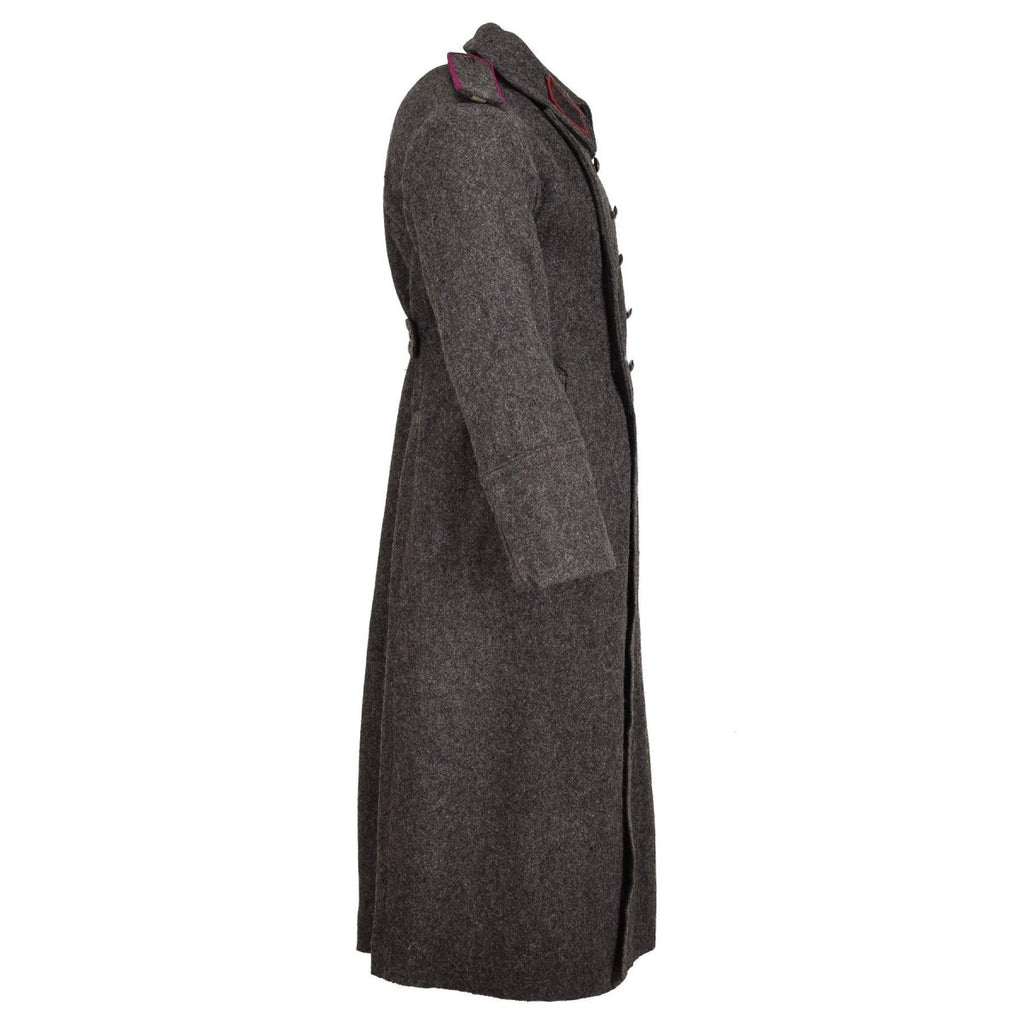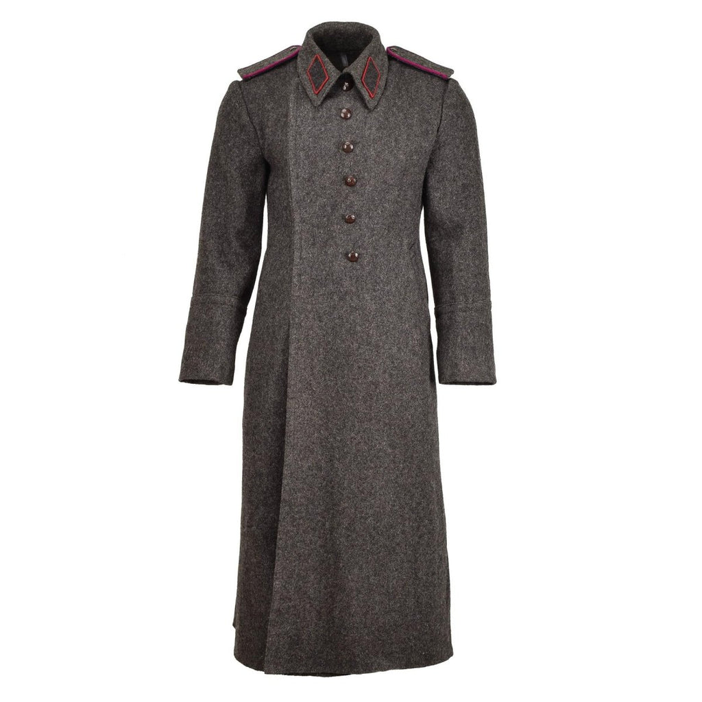 Maak kennis met de originele Bulgaarse militaire grijze wollen overjas, een klassieke en duurzame vintage wollen jas, ideaal voor extreme winteromstandigheden.