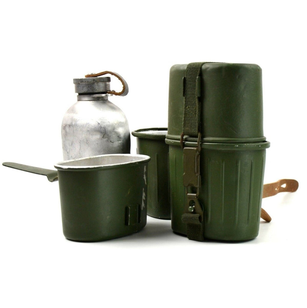 Deze originele kantineset van het Duitse leger is een praktisch en veelzijdig stuk militaire overtollige uitrusting, ontworpen voor gebruik in het veld en buitenactiviteiten. De set bevat doorgaans een waterfles, drinkbeker en kookgerei voor een puinhoop, waardoor hydratatie, eten en eenvoudige voedselbereiding mogelijk zijn in één compact systeem.