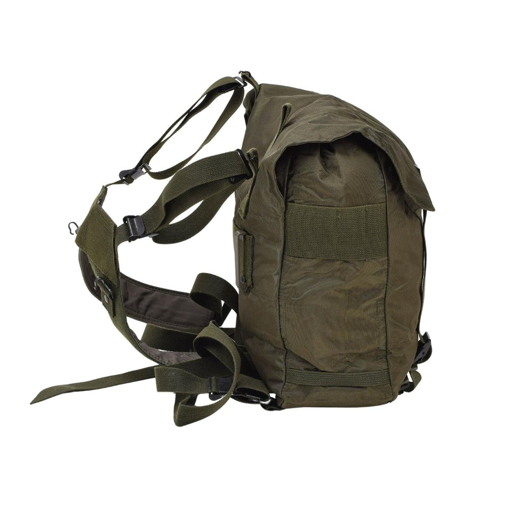 Maak kennis met de onmisbare originele Oostenrijkse vintage rugzak met militaire coating voor kamperen en buitenavonturen. Deze rugzak met olijfkleurige coating is gloednieuw en biedt een capaciteit van 25 liter om al je benodigdheden mee te nemen.