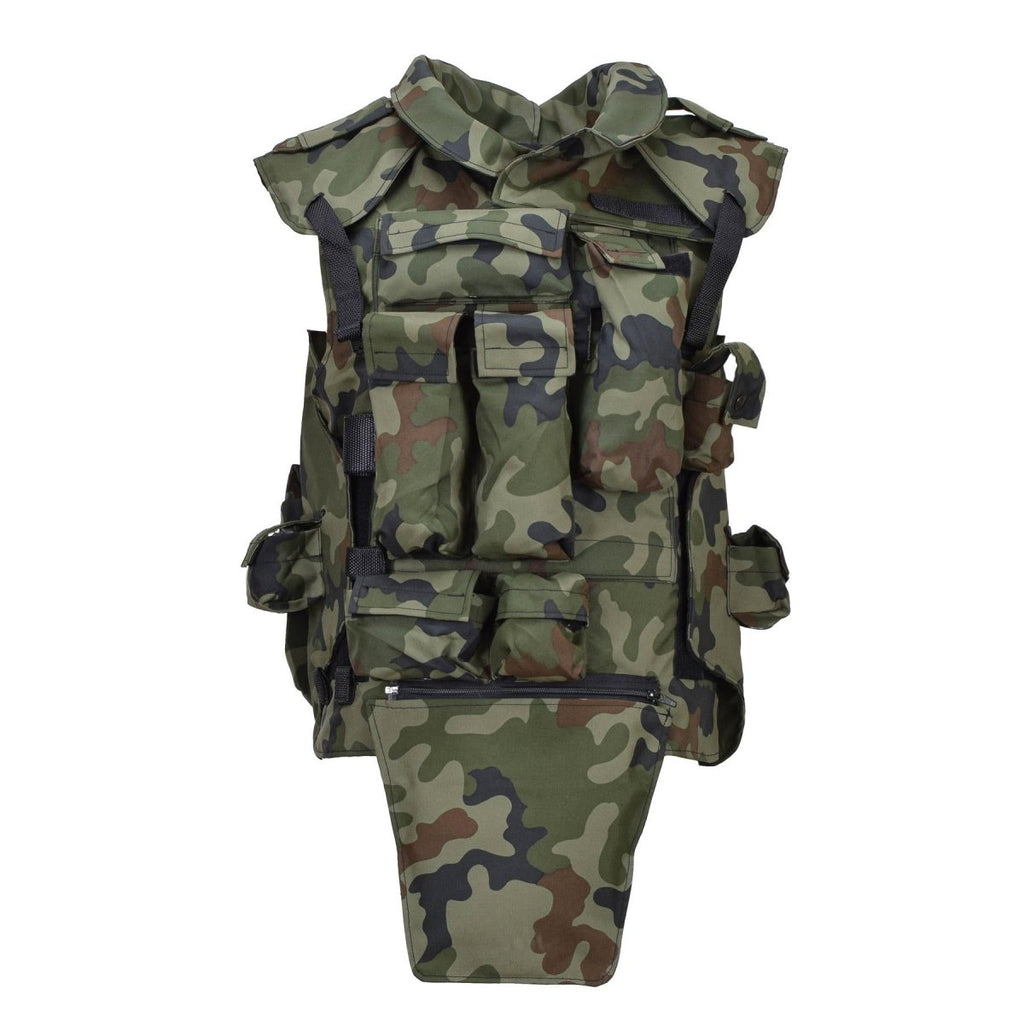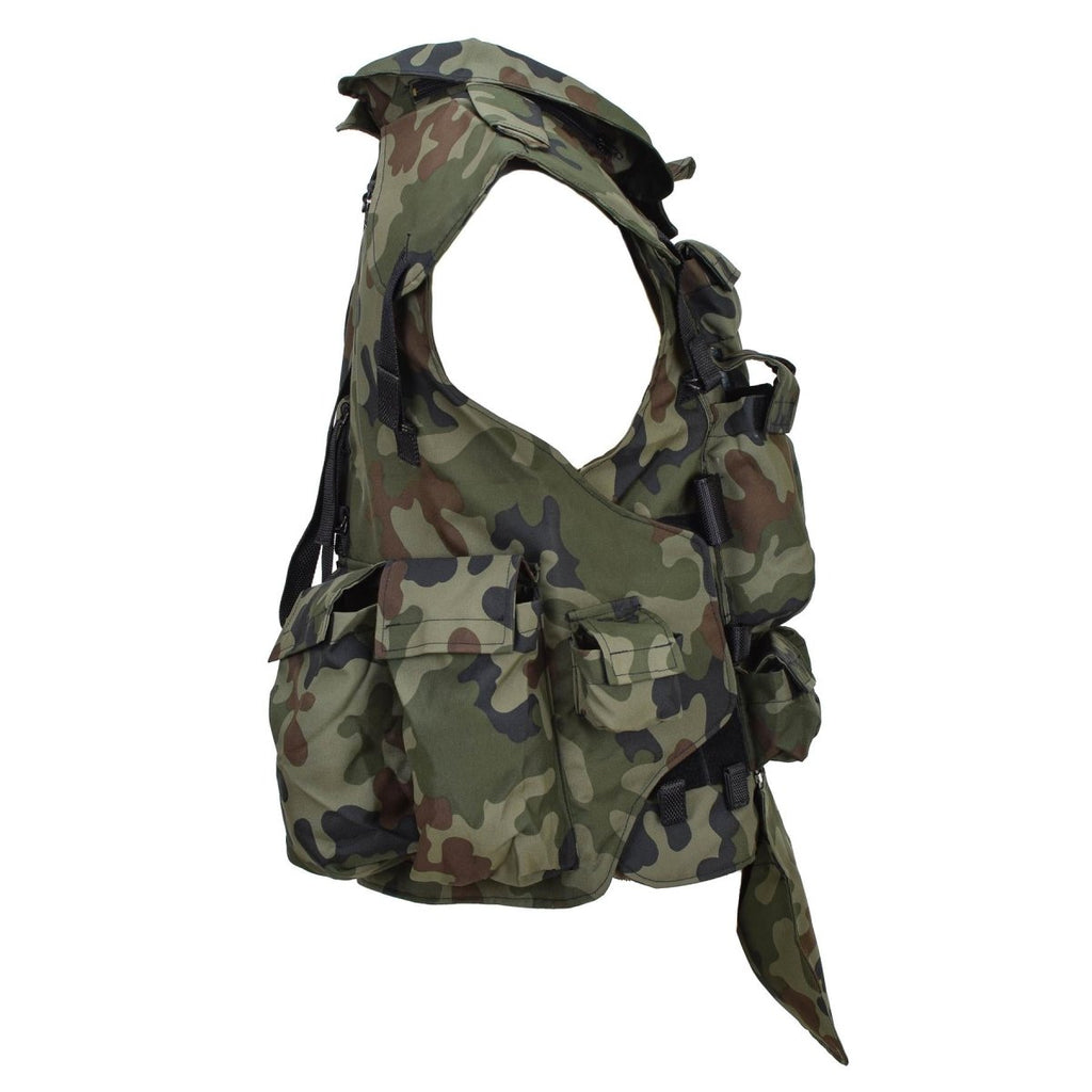 Dit originele Poolse militaire tactische vest, ontworpen voor het dragen van platen, is voorzien van een duurzame polyester constructie in een Woodland-camouflagepatroon. Het bevat meerdere vakken voor het opbergen van spullen, een verstelbare pasvorm voor comfort en een reddingshandvat voor noodextracties. Verkrijgbaar in twee varianten, elk met een unieke zakconfiguratie om aan uw tactische behoeften te voldoen.