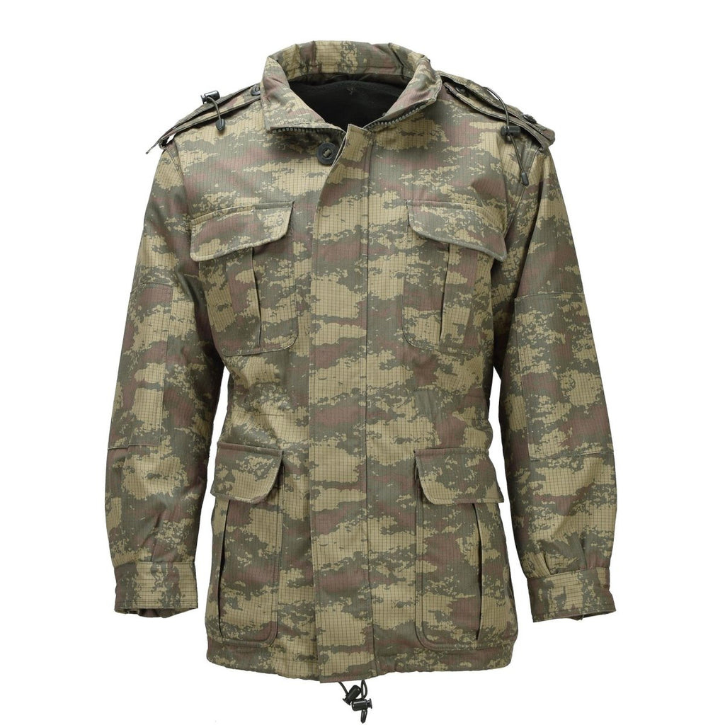 Deze jas is voorzien van een fleecevoering en biedt extra warmte en comfort, waardoor hij geschikt is voor koelere weersomstandigheden. Het M2008-camouflagepatroon zorgt voor effectieve verhulling in gemengde terreinomgevingen en weerspiegelt het standaardontwerp dat door de Turkse strijdkrachten wordt gebruikt.