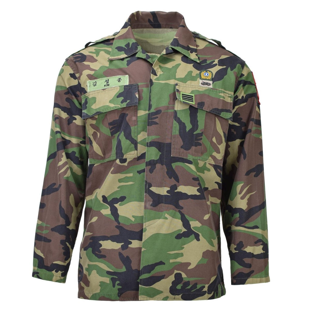 De getoonde Korea-legeroverhemden zijn van duurzaam katoen met een opvallend groen en zwart patroon voor effectieve verberging buitenshuis. Concreet is het de M90-boscamouflage-gevechtsveldvariant van het originele Zuid-Koreaanse militaire tactische shirt.