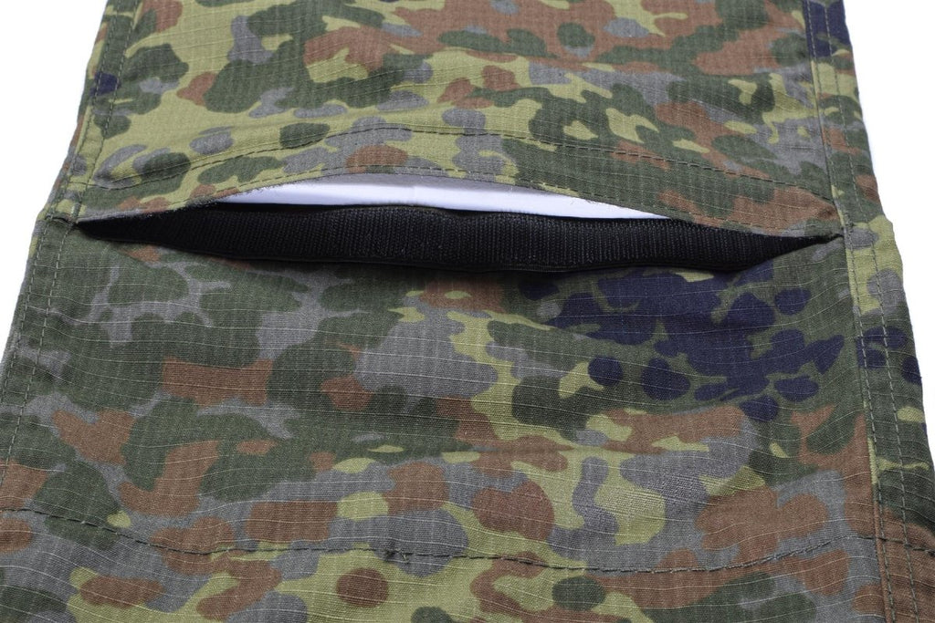 - Deze gevlekte cargobroek is gemaakt van hoogwaardig ripstop-materiaal, scheurt niet en is bestand tegen intensief gebruik. De versterkte zitting en knieën zorgen voor extra duurzaamheid, waardoor ze ideaal zijn voor kruipen, knielen of intensieve activiteiten. Het flecktarn-camouflagepatroon gaat naadloos over in de natuurlijke omgeving en zorgt voor een effectieve verhulling in bosrijke gebieden.