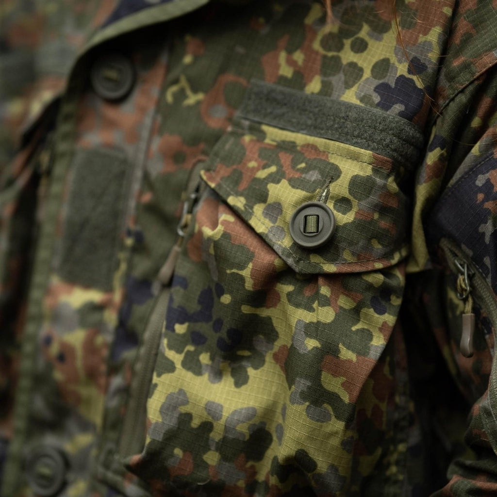 De duurzame YKK-rits en stormflap met knoop sluiten de deal af en bieden extra bescherming tegen de elementen. Of je nu de natuur verkent of je voorbereidt op tactische operaties, deze jas is gemaakt om te presteren. De Flecktarn Tactical Jacket is een betrouwbare keuze voor iedereen die behoefte heeft aan een stoere, veelzijdige jas die stijl combineert met functionaliteit.